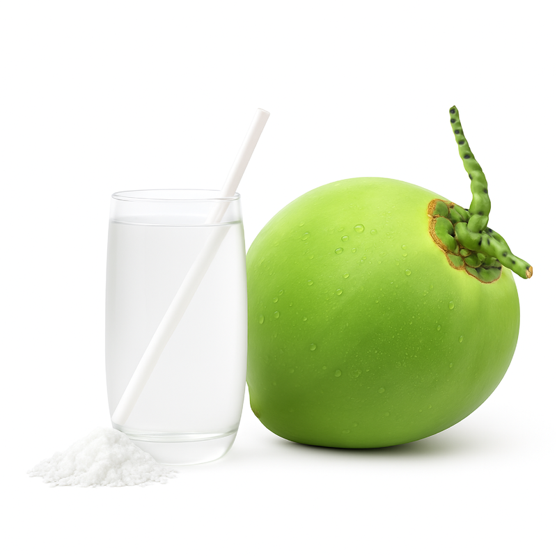 - กระบวนการผลิตหรือการตลาด:ผ่านกระบวนการ Spray Dry ที่ควบคุมอุณหภูมิ เพื่อคงสารสำคัญจากน้ำมะพร้าว เช่น electrolytes, cytokinins โดยไม่มีการแต่งกลิ่นหรือสีเพิ่มเติม