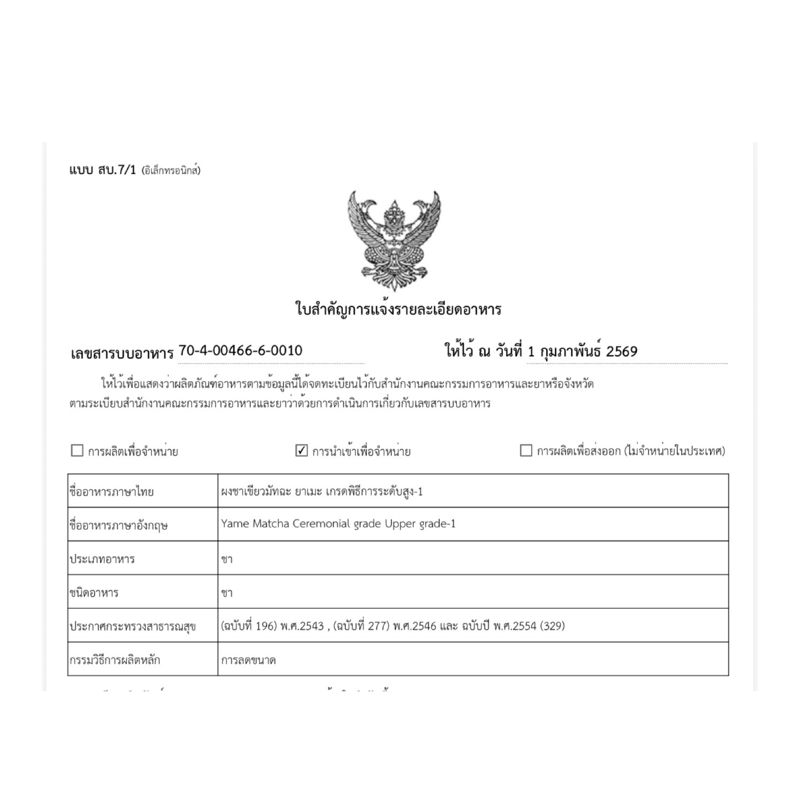 ผงมัทฉะ ยาเมะ (เกรดพิธีการ) (Japan Tea Gold Award Winner Paris 2025)
