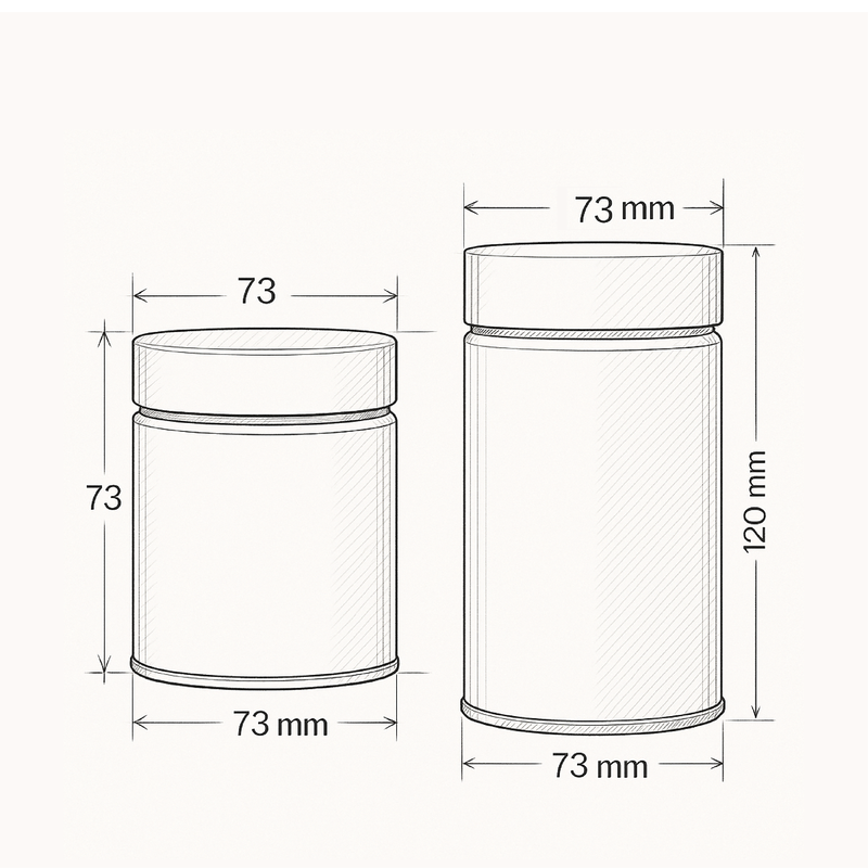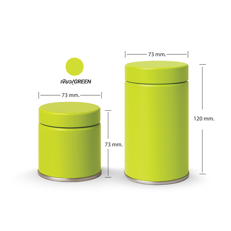 - กระปุก 73*120 mm. บรรจุผงมัทฉะ ได้ไม่เกิน 200 กรัม +-